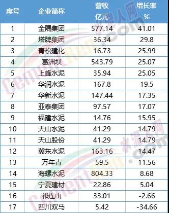 2021年上半年各水泥企業(yè)營(yíng)收數(shù)據(jù)一覽