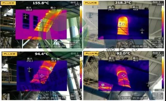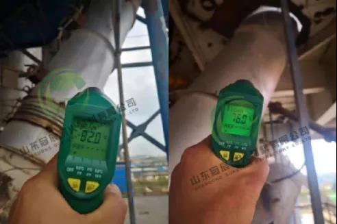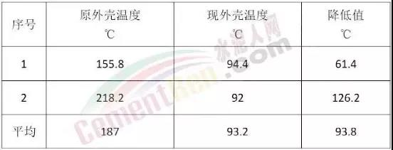 新型納米微晶管安裝到下料管中并投入使用后,在正常生產(chǎn)運(yùn)行中,用專門的紅外線成像測溫儀器,對更換的部位進(jìn)行測溫,溫度改善效果詳細(xì)見下表。
