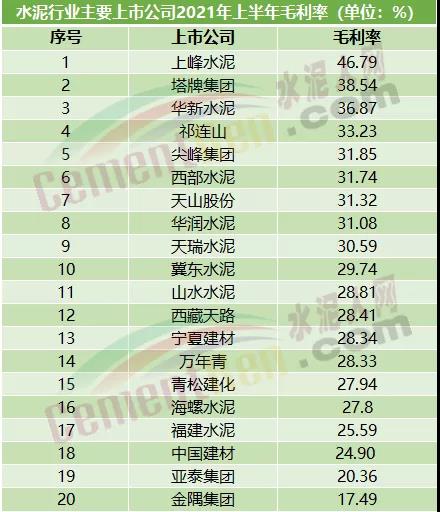 一直以來,海螺水泥被稱之為水泥行業(yè)的最大“金主”、水泥行業(yè)的“賺錢王”、水泥行業(yè)的“水泥茅”。然而從企業(yè)的毛率利來看,海螺水泥連前十都進不了,與毛利率最高的上峰水泥相比,海螺水泥比上峰水泥毛利率低18.99%,低出一個金隅集團。