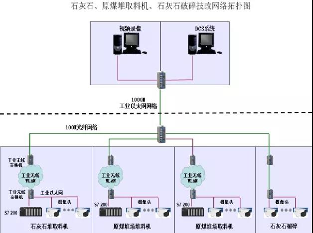 4.在石灰石圓形堆取料機堆取料機上安裝了四個高清數碼攝像機,原煤側式懸臂堆料機、原煤橋式刮板取料機上分別安裝了三個高清數碼攝像機,實時傳輸現場的視頻圖像到中控,視頻數據也是通過工業(yè)無線交換機進行數據傳輸。