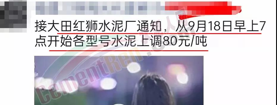 大田紅獅水泥廠通知,從9月18日早上7時起上調(diào)各標(biāo)號水泥價格80元/噸。