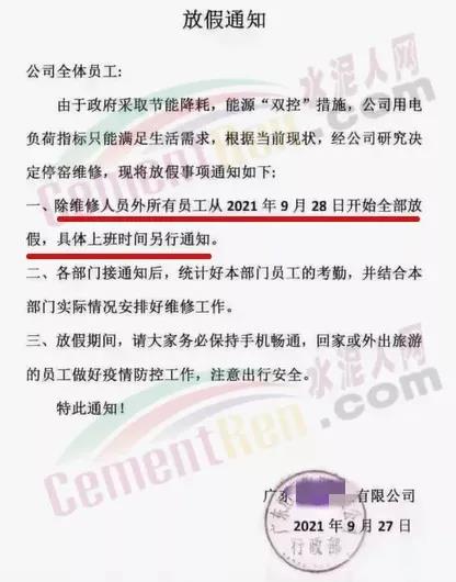 遼寧省工信廳發(fā)布《關(guān)于水泥行業(yè)熟料生產(chǎn)實(shí)施有序用電措施的通知》稱,水泥作為高耗能行業(yè),其大負(fù)荷用電特性,已在現(xiàn)階段給電網(wǎng)安全穩(wěn)定運(yùn)行帶來隱患。經(jīng)研究決定將全省水泥行業(yè)熟料生產(chǎn)用電列為第一序列實(shí)施有序用電。自2021年10月9日8時(shí)起,對全省水泥行業(yè)企業(yè)實(shí)施有序用電措施,期間水泥熟料生產(chǎn)停止用電。有序用電時(shí)間預(yù)計(jì)不低于15天,結(jié)束時(shí)間另行通知。對擅自啟動水泥熟料生產(chǎn)用電的企業(yè),要責(zé)令改正,情節(jié)嚴(yán)重的停止供電。