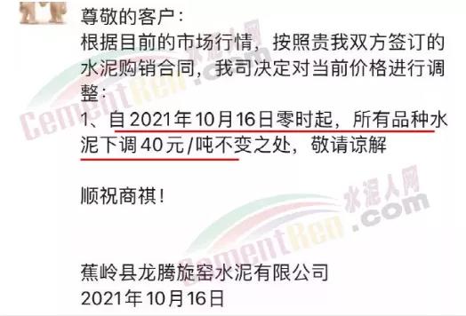 云南區(qū)域此前因限電限產(chǎn)原因,直接拉漲。近期玉溪、紅河等區(qū)域通知下調(diào)水泥價(jià)格50元/噸。