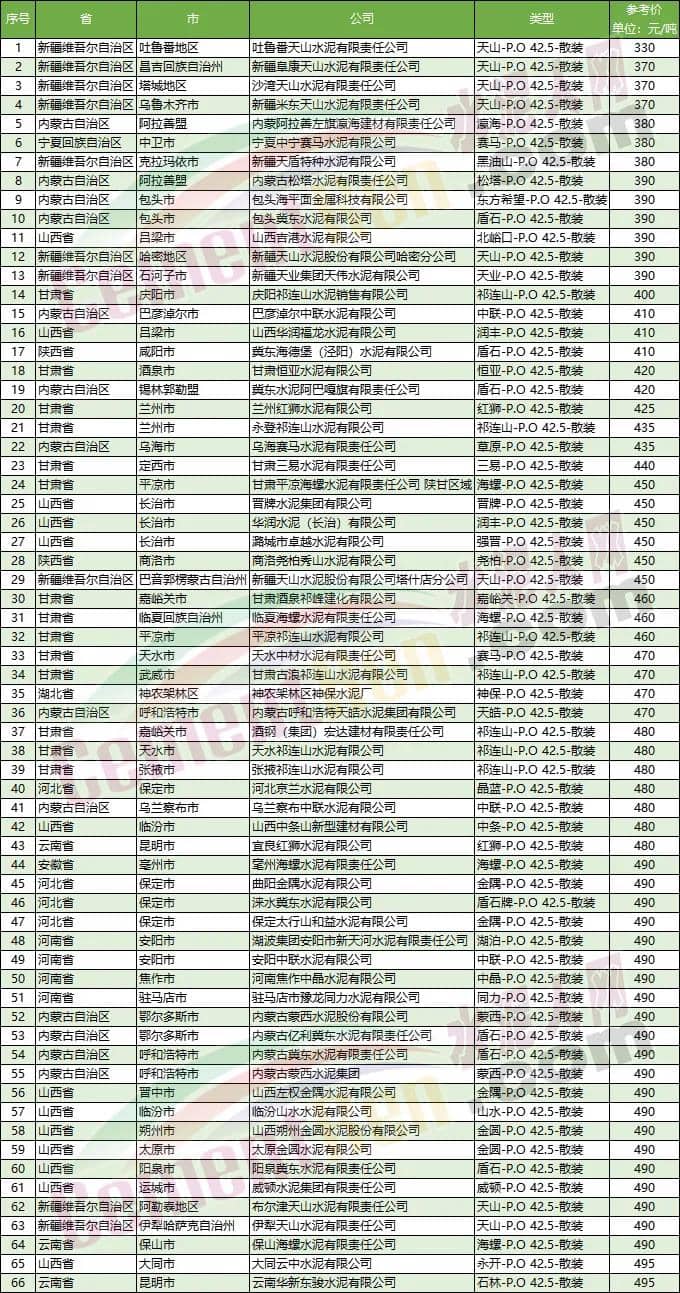 西藏發(fā)改委10月21日公布的建材價格變動周報顯示普通硅酸鹽水泥出廠價格。與上期環(huán)比,重點監(jiān)測的8個品種價格“2降2升4平”,下降的分別為:昌都高爭32.5(強度)下降9.06%、昌都高爭42.5(強度)下降0.19%;上漲的分別為:高爭建材32.5(強度)上漲8.16%、高爭建材42.5(強度)上漲5.45%;華新32.5(強度)、華新42.5(強度)、高新32.5(強度)、高新42.5(強度)價格持平。