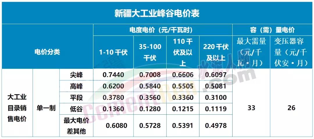 新疆峰谷電價(jià)差最大可達(dá)0.6元/kWh以上。尖峰時(shí)段用電價(jià)格在峰段電價(jià)基礎(chǔ)上每千瓦時(shí)上浮20%。峰谷電價(jià)標(biāo)準(zhǔn)暫按現(xiàn)行規(guī)定執(zhí)行。分時(shí)電價(jià)機(jī)制自2022年1月1日起執(zhí)行。