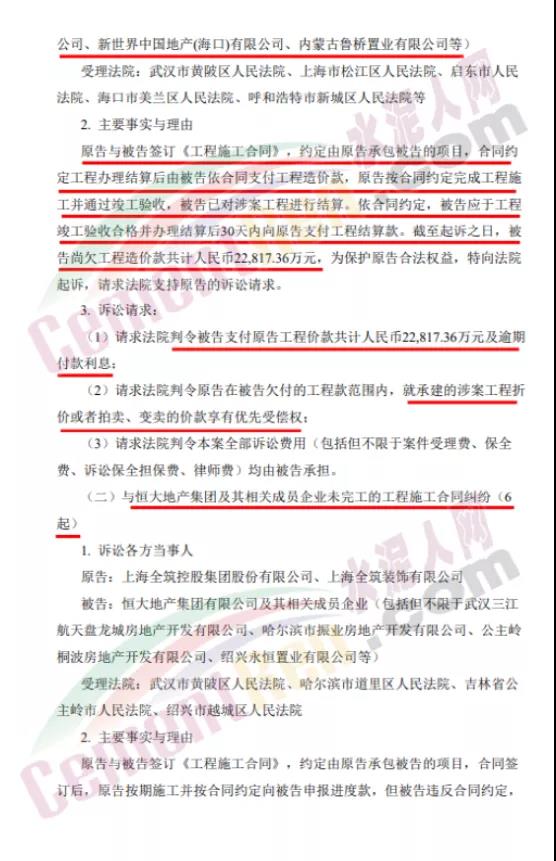 11月17日晚間,全筑股份公告稱,公司及全資子公司全筑裝飾與恒大地產(chǎn)集團及其相關(guān)成員企業(yè)因工程款糾紛事宜已向多地法院提起訴訟。全筑股份訴恒大方面支付工程價款共計2.38億元及逾期付款利息,并承擔案件相關(guān)訴訟費用。全筑股份表示,正積極采取司法訴訟、政府協(xié)調(diào)等多種方式解決恒大應收款問題。