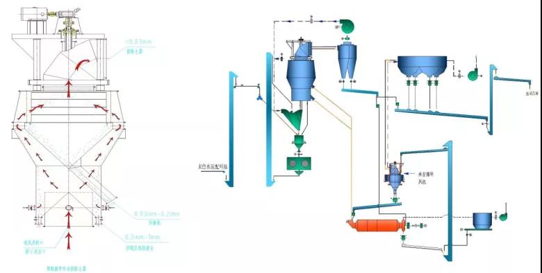 智能雙驅粉體精密分級機原理圖(左)工藝流程示意圖三(右)