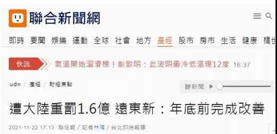臺灣遠(yuǎn)東集團(tuán)在大陸投資企業(yè)被罰款,當(dāng)事企業(yè)回應(yīng):將虛心面對,防止類似事情再發(fā)生