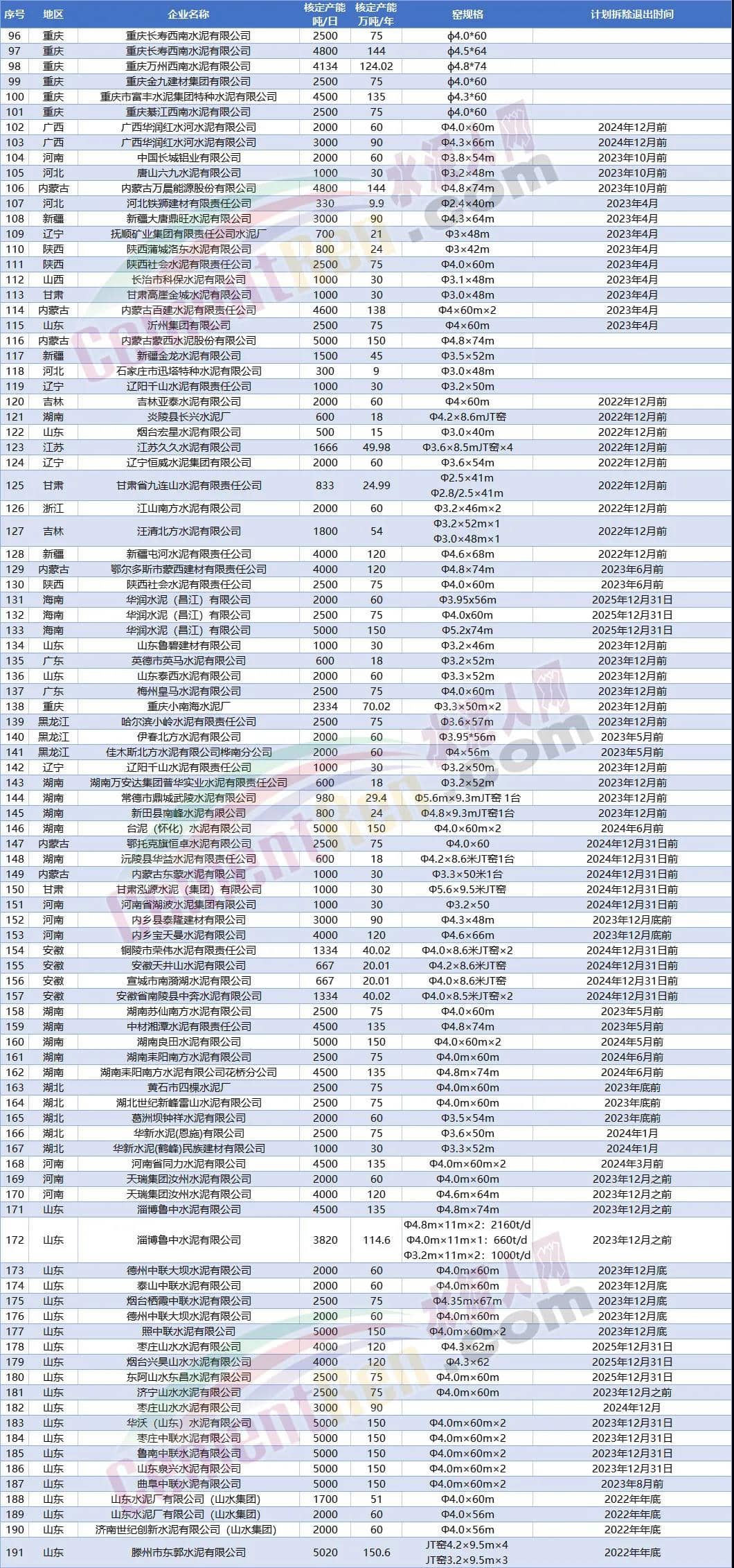 據(jù)水泥人網(wǎng)了解,為響應(yīng)國家淘汰落后產(chǎn)能、落后工藝,各大水泥企業(yè)積極退出高能耗低產(chǎn)能水泥熟料生產(chǎn)線,大規(guī)模的淘汰水泥行業(yè)落后產(chǎn)能。