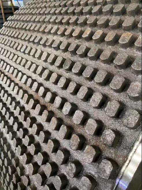 7、增加產(chǎn)量,目前采用的方格堆焊(傳統(tǒng)為網(wǎng)紋)產(chǎn)量同比增加5%左右、減少停臺(tái)時(shí)間,節(jié)約了維修成本,又增加了產(chǎn)量真正達(dá)到了降本節(jié)能之目的;