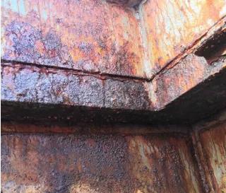 鳳陽某廠、漳平某廠窯尾除塵器采用涂刷環(huán)氧富鋅底漆作為防腐措施,運(yùn)行約三個(gè)月內(nèi)防腐效果良好。但后期環(huán)氧富鋅漆中鋅元素消耗完畢,除塵器產(chǎn)生嚴(yán)重腐蝕現(xiàn)象。
