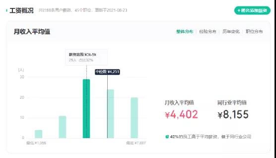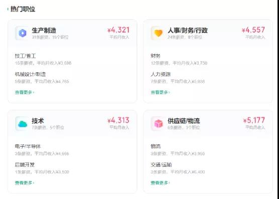 其中月薪最高7807元,最低1056元,熱門職位中生產制造平均月收入為4321元,供應鏈/物流為5177元。擁有2年經驗的生產操作員,月薪7807元,無經驗的普工操作工月薪1500元。