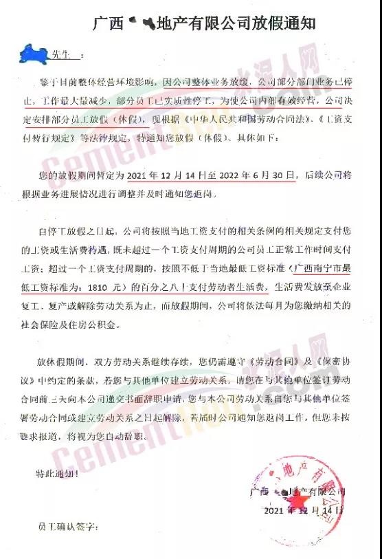 水泥行業(yè)轉(zhuǎn)型環(huán)保屢屢受阻,同時(shí)下游房企頻頻爆雷。近日,一家品牌房企發(fā)布發(fā)“強(qiáng)制休假”公告,要求部分員工休假至2022年6月底。