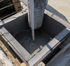 本次CF120超高強(qiáng)泵送混凝土和易性良好,出機(jī)坍落擴(kuò)展度700mm,倒置坍落度筒排空時間為5.8秒,各項(xiàng)指標(biāo)均達(dá)到預(yù)期設(shè)計(jì)效果,能滿足超高層和長距離泵送的要求。在廠區(qū)內(nèi),采用泵送方式澆筑成型7個立方體試模(邊長0.5m),技術(shù)人員全程采集了該混凝土的生產(chǎn)工藝參數(shù)、泵送壓力、澆筑速率和溫度監(jiān)測等數(shù)據(jù),為公司CF120超高強(qiáng)混凝土的生產(chǎn)澆筑積累了寶貴經(jīng)驗(yàn)。