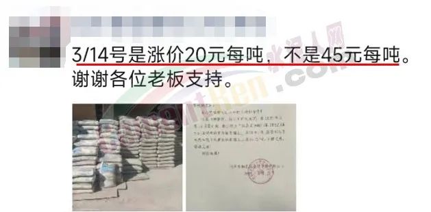 企業(yè)銷售負責人連發(fā)多份通知提示,3月14日是漲20元/噸,不是45元/噸。
