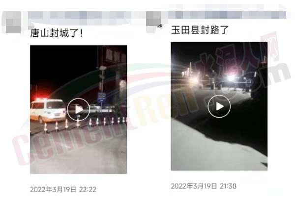 與時(shí)同時(shí),有水泥經(jīng)銷(xiāo)商發(fā)消息稱(chēng),“唐山封城了”、“玉田封路了”……