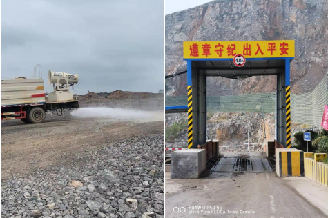 為大力改善職工的生活環(huán)境,華沃水泥購置4臺吸塵清掃灑水車、每天對礦區(qū)辦公生活主干道停車場等區(qū)域進(jìn)行不間斷的清掃灑水;礦山道路安裝自動噴淋系統(tǒng),實(shí)現(xiàn)道路和綠化區(qū)的自動噴淋;配置自動洗車臺,開采平臺安裝噴淋系統(tǒng),采用濕法作業(yè);配備霧炮車對場地裝車時進(jìn)行噴水、噴霧防塵;運(yùn)輸物料車安裝了自動伸縮篷布,進(jìn)行物料全遮蓋;破碎站入料口為全封閉大鋼結(jié)構(gòu)棚,場地及周圍全部進(jìn)行了硬化和美化;卸料口安裝了大功率收塵器,棚內(nèi)設(shè)置四道噴淋噴霧裝置,控制效果達(dá)到100%;對臨時不開采的平臺采用防塵網(wǎng)覆蓋,實(shí)現(xiàn)礦區(qū)無塵化。