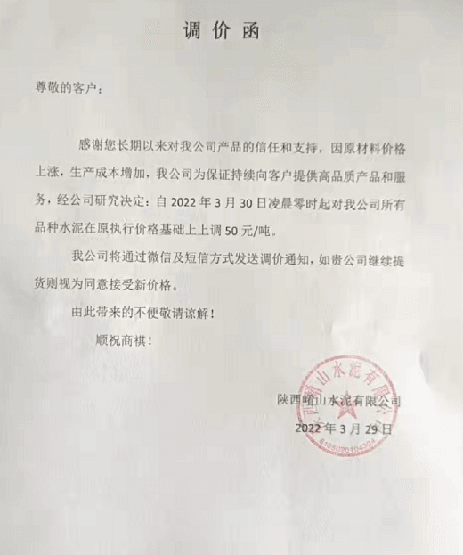近期眾多水泥廠發(fā)函稱,因原燃材料價(jià)格上漲,導(dǎo)致企業(yè)生產(chǎn)成本增加。也有企業(yè)明確表示燃煤、電費(fèi)以及運(yùn)輸費(fèi)用的上漲是導(dǎo)致企業(yè)成本增加的主要原因。