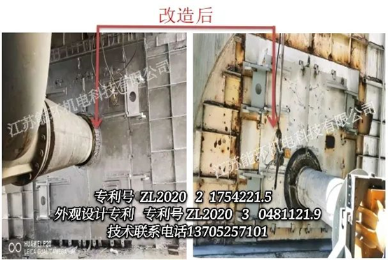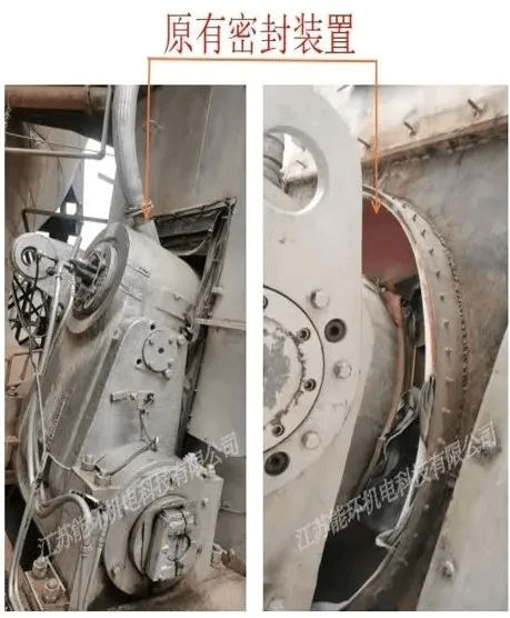 下面是某水泥廠窯頭窯門密封改造前與改造后的情況對比,解決了回轉(zhuǎn)窯窯頭窯門密封效果不佳引起的漏風、漏料、污染環(huán)境等情況。
