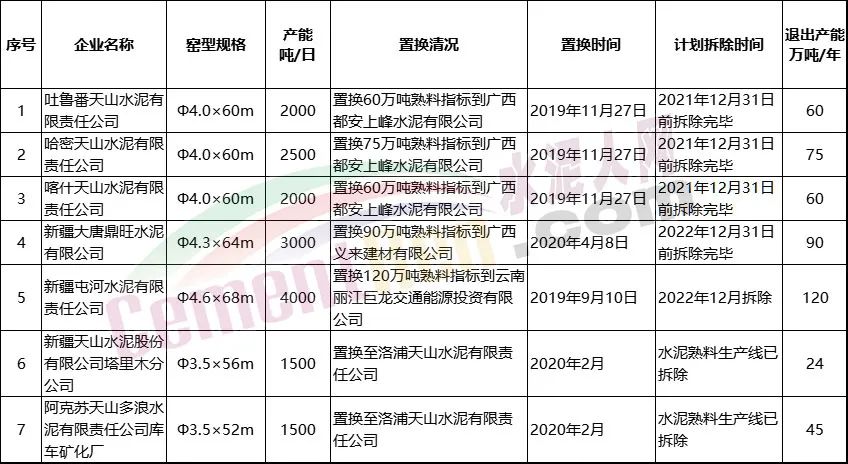 新疆7條熟料生產(chǎn)線已拆除、擬拆除熟料產(chǎn)能合計(jì)474萬噸/年
