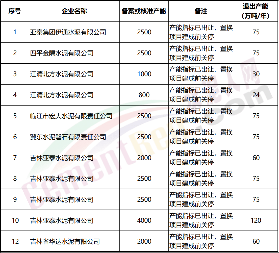 吉林省擬關(guān)停退出12條熟料生產(chǎn)線,退出產(chǎn)能合計(jì)744萬噸/年