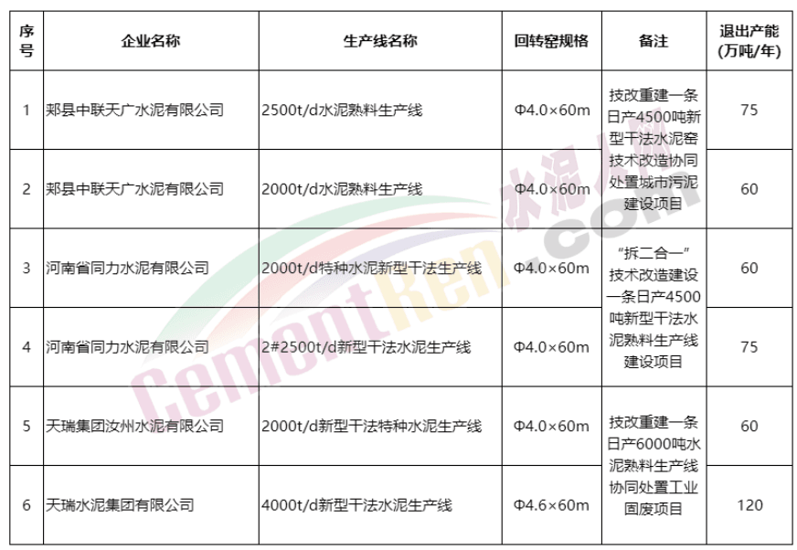 河南擬退出6條熟料生產(chǎn)線合計(jì)450萬噸產(chǎn)能用于置換新建3條生產(chǎn)線