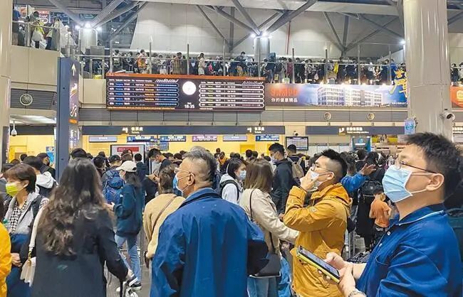 大批旅客4月1日晚擠爆臺(tái)灣高鐵臺(tái)南站、左營(yíng)站。