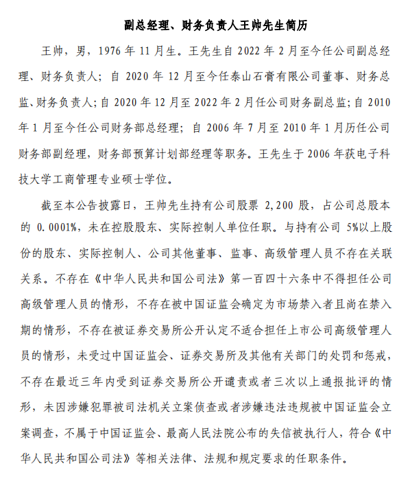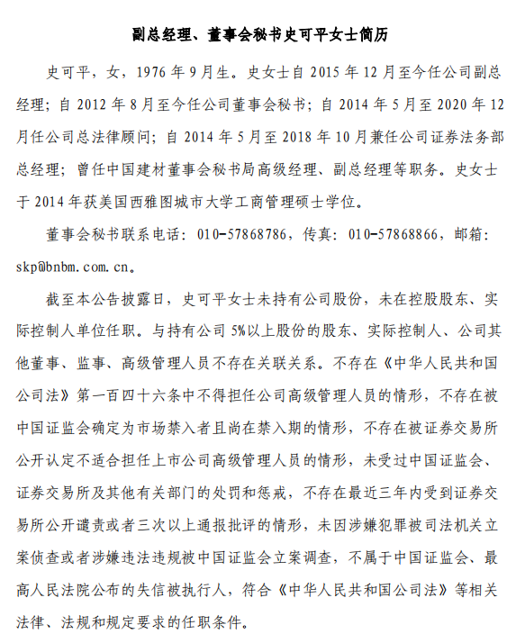 史可平、郝曉冬、楊正波、王帥、任利擔任副總經(jīng)理。