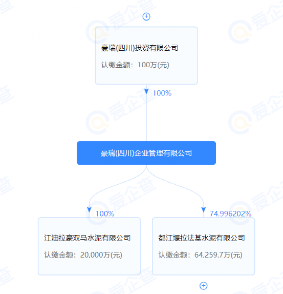 豪瑞(四川)企業(yè)管理有限公司對(duì)外投資兩家公司,分別為江油拉豪雙馬水泥有限公司和都江堰拉法基水泥有限公司。