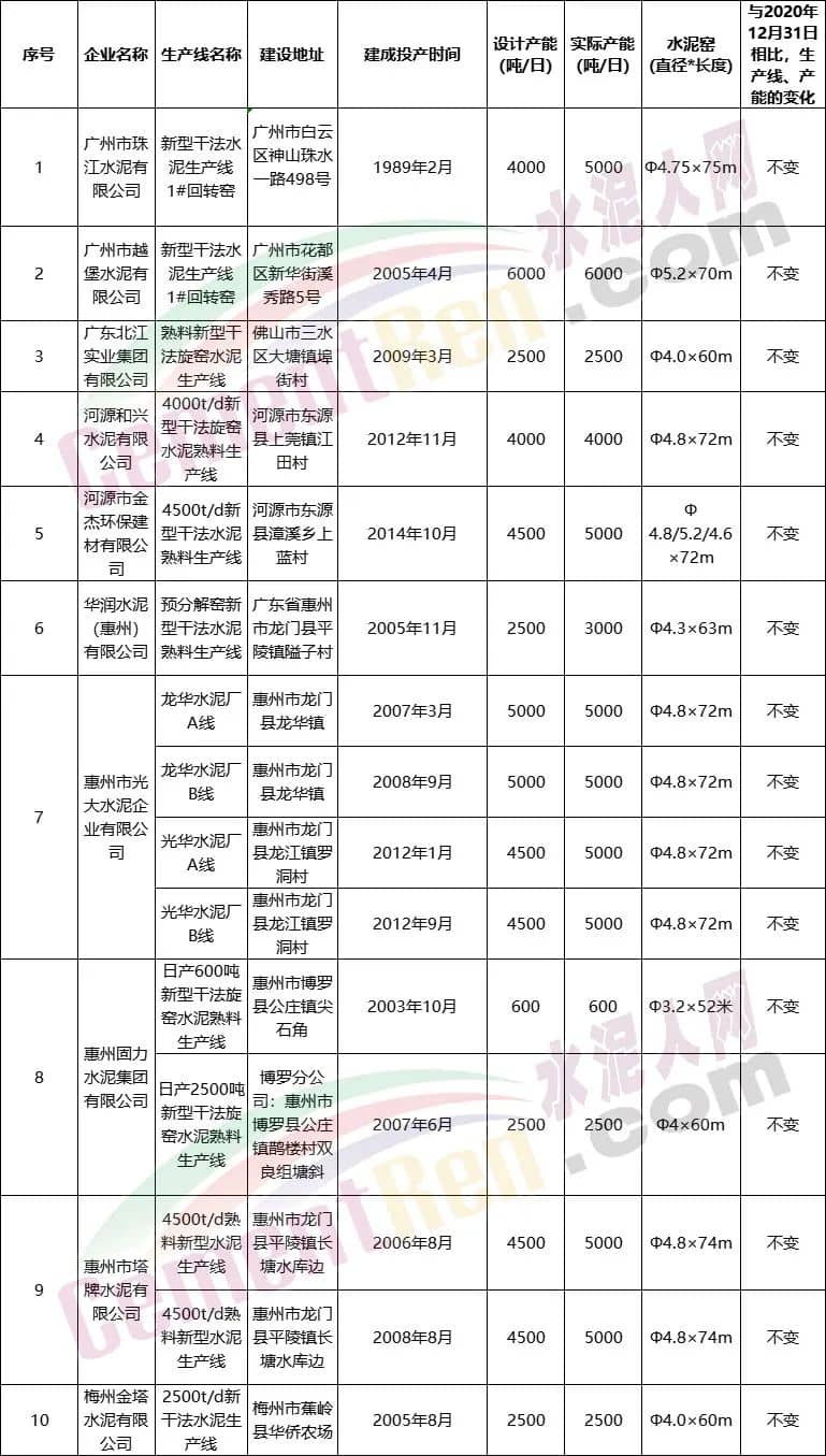 4月20日,廣東省工業(yè)和信息化廳公布了《2021年廣東省水泥熟料平板玻璃生產(chǎn)線清單》,截至2021年12月31日,廣東省內(nèi)共計(jì)78條水泥熟料生產(chǎn)線,其中7條生產(chǎn)線已停產(chǎn)。