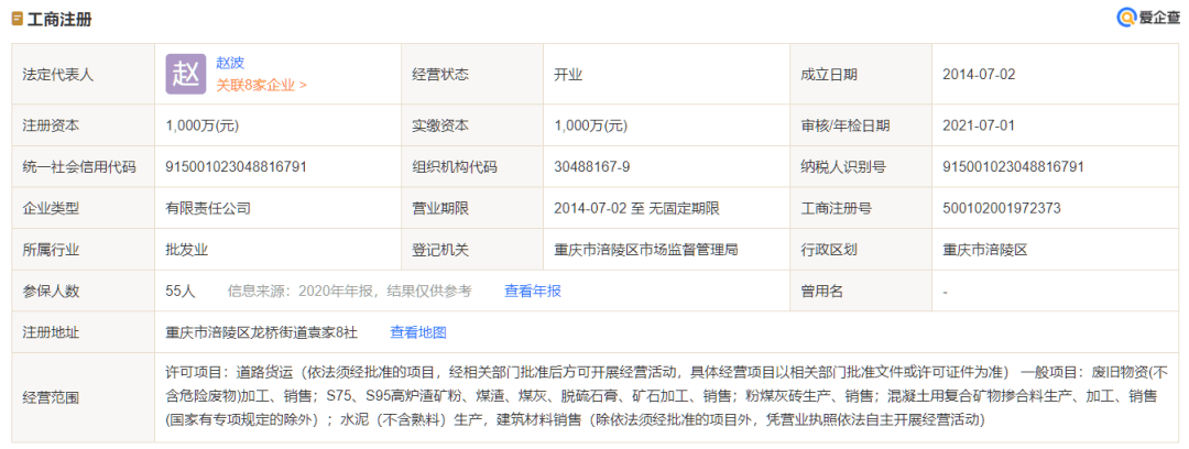 企業(yè)工商注冊(cè)信息顯示,重慶市多吉再生資源有限公司成立于2014年07月02日,注冊(cè)地位于重慶市涪陵區(qū)龍橋街道袁家8社,法定代表人為趙波。