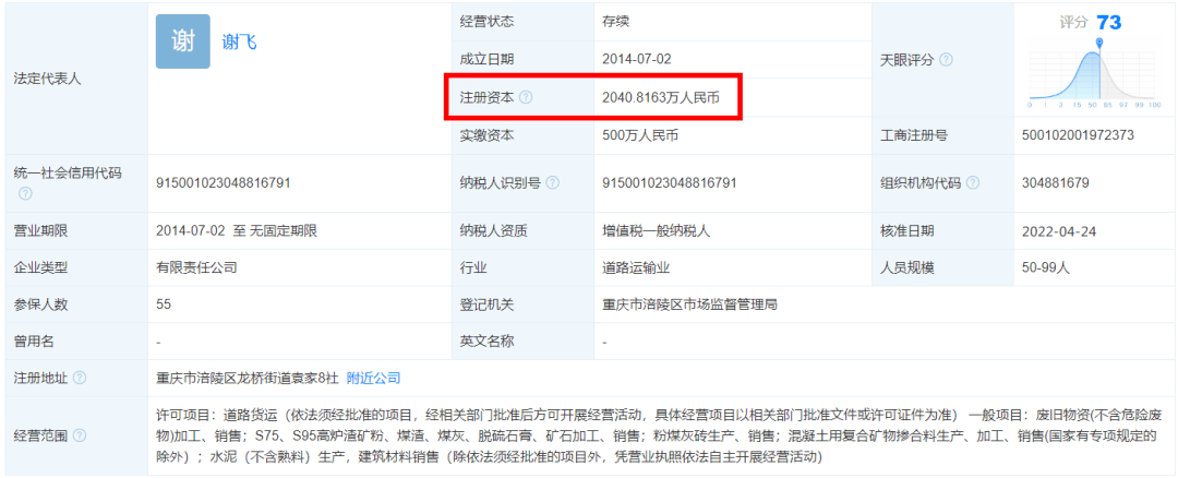 天眼查查詢(xún)結(jié)果顯示,重慶市多吉再生資源有限公司,成立于2014-07-02,注冊(cè)資本為2040.8163萬(wàn)人民幣,法定代表人為謝飛,經(jīng)營(yíng)狀態(tài)為存續(xù),工商注冊(cè)號(hào)為500102001972373,注冊(cè)地址為重慶市涪陵區(qū)龍橋街道袁家8社,經(jīng)營(yíng)范圍包括許可項(xiàng)目:道路貨運(yùn)(依法須經(jīng)批準(zhǔn)的項(xiàng)目,經(jīng)相關(guān)部門(mén)批準(zhǔn)后方可開(kāi)展經(jīng)營(yíng)活動(dòng),具體經(jīng)營(yíng)項(xiàng)目以相關(guān)部門(mén)批準(zhǔn)文件或許可證件為準(zhǔn)) 一般項(xiàng)目:廢舊物資(不含危險(xiǎn)廢物)加工、銷(xiāo)售;S75、S95高爐渣礦粉、煤渣、煤灰、脫硫石膏、礦石加工、銷(xiāo)售;粉煤灰磚生產(chǎn)、銷(xiāo)售;混凝土用復(fù)合礦物摻合料生產(chǎn)、加工、銷(xiāo)售(國(guó)家有專(zhuān)項(xiàng)規(guī)定的除外);水泥(不含熟料)生產(chǎn),建筑材料銷(xiāo)售(除依法須經(jīng)批準(zhǔn)的項(xiàng)目外,憑營(yíng)業(yè)執(zhí)照依法自主開(kāi)展經(jīng)營(yíng)活動(dòng))。