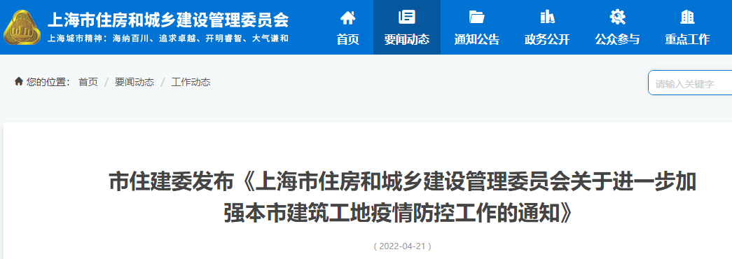 為全面貫徹落實(shí)市委、市政府疫情防控工作決策部署, 堅(jiān)持“動(dòng)態(tài)清零”總方針不動(dòng)搖,把建筑工地疫情社會(huì)面清零落到實(shí)處,堅(jiān)決遏制工地疫情反彈,市住房城鄉(xiāng)建設(shè)管理委發(fā)布了《上海市住房和城鄉(xiāng)建設(shè)管理委員會(huì)關(guān)于進(jìn)一步加強(qiáng)本市建筑工地疫情防控工作的通知》。
