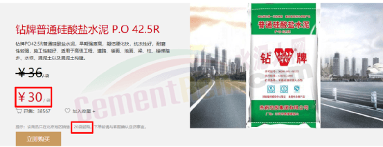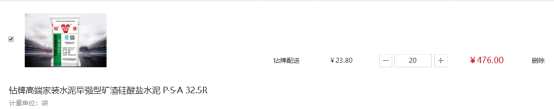 一袋P.S.A32.5R水泥售價(jià)23.8元;一袋P.O42.5R水泥售價(jià)30元,且都明確20包起售。