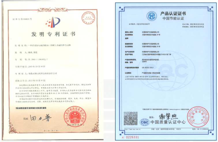 優(yōu)普森是在國內(nèi)永磁電機(jī)領(lǐng)域開始較早、產(chǎn)品系列齊全、電機(jī)效率更高的企業(yè),其低壓永磁同步電機(jī)全系列獲得國家一級能效標(biāo)準(zhǔn)認(rèn)證,是國家電機(jī)等效新標(biāo)準(zhǔn)實(shí)施以來,業(yè)內(nèi)第一批獲此殊榮的單位。