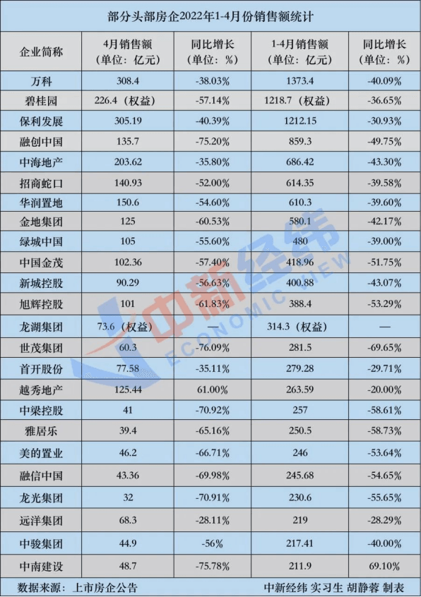 據(jù)公開數(shù)據(jù),進(jìn)入5月份,多家上市房企相繼公布2022年1-4月份的銷售業(yè)績(jī)。據(jù)不完全統(tǒng)計(jì),截至5月13日,已公布銷售業(yè)績(jī)的頭部房企,銷售額幾乎全部呈現(xiàn)負(fù)增長(zhǎng),其中,至少有18家房企4月份的銷售額出現(xiàn)腰斬,同比下降超過50%。