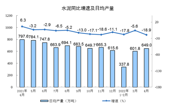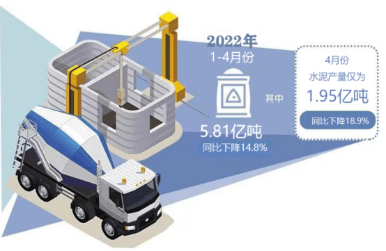 地產(chǎn)是水泥的下游行業(yè),地產(chǎn)行業(yè)持續(xù)低迷,水泥行業(yè)也不樂觀。據(jù)國家統(tǒng)計(jì)局最新數(shù)據(jù),2022年1-4月全國累計(jì)水泥產(chǎn)量5.81億噸,同比下降14.8%;4月全國單月水泥產(chǎn)量1.95億噸,同比下降18.9%。
