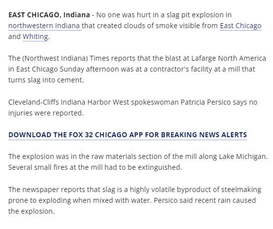 爐渣是煉鋼的一種高度揮發(fā)性的副產(chǎn)品,與水混合時(shí)容易爆炸。據(jù)Persico稱,可能是最近的降雨導(dǎo)致了這場爆炸。