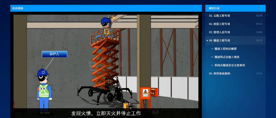 以安全教育培訓為例:管理人員無需費時費力準備復雜的資料,通過工具箱系統(tǒng)選擇課程或自主創(chuàng)建培訓方案,啟動集中培訓后,系統(tǒng)將按照培訓專題自動播放多媒體安全培訓課件,課程全部采用多媒體形式,學員集中接受安全培訓。培訓課程風格多樣,有2D/3D卡通風格、MG動畫風格和宣教寫實風格等。課件趣味性強,以較夸張的卡通風格人物、場景演繹事故風險,通俗易懂的語言突出重點知識點,直觀生動不乏味,令員工記憶深刻。