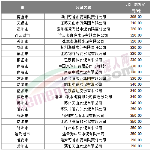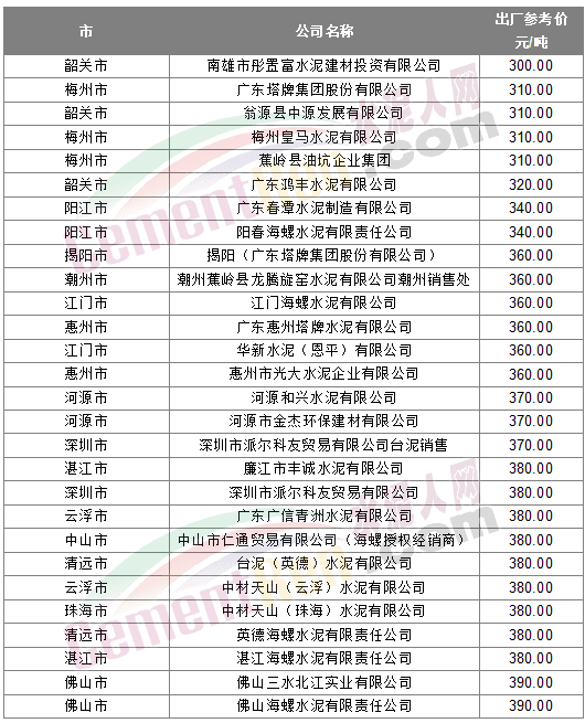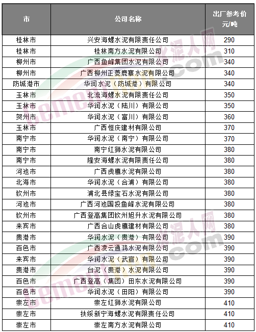 * 上述出廠參考價來源水泥人網(wǎng)信息中心人工采集,僅供參考。如與實際成交不符請以實際成交價格為準(zhǔn)。
