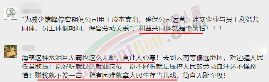 云南區(qū)域海螺水泥則要求員工“集中休假,只發(fā)低保工資且要求隨時(shí)待命,不允許外出打工。”在海螺水泥是首次出現(xiàn)。據(jù)員工反饋600多元的低保工資不能保證“養(yǎng)家糊口”。