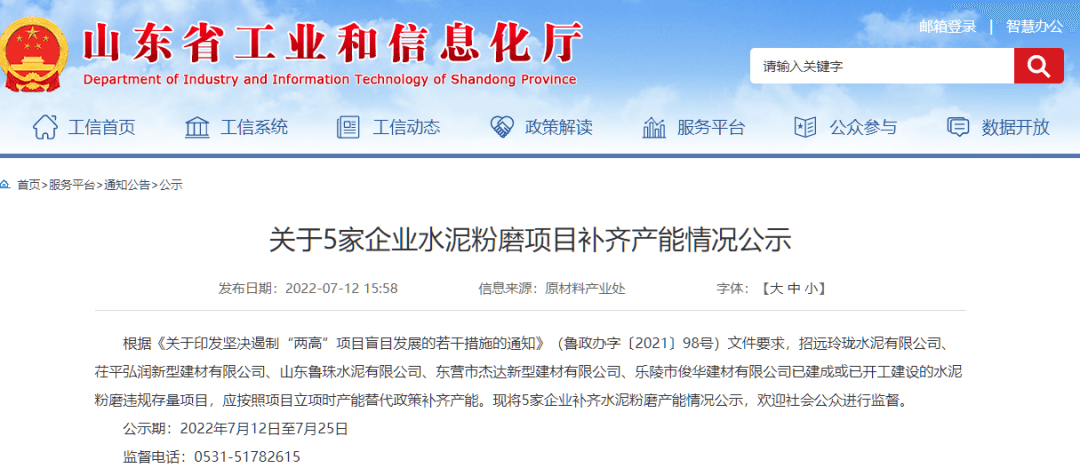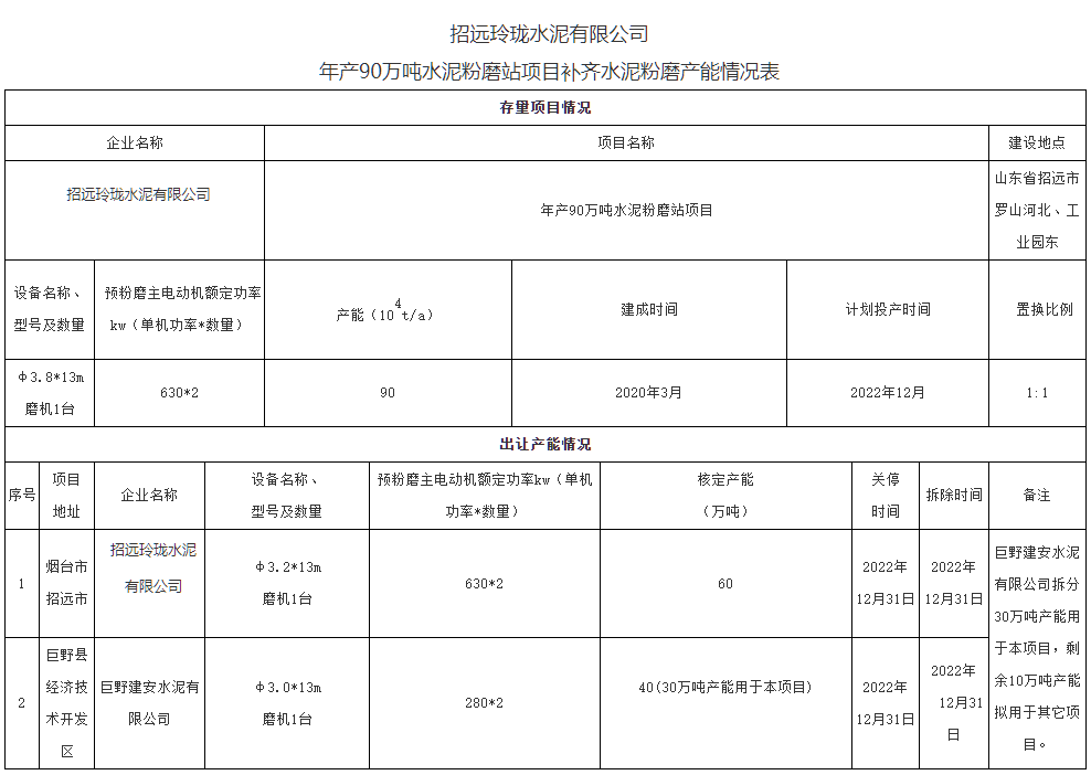 日前,山東工信廳發(fā)布《關(guān)于5家企業(yè)水泥粉磨項(xiàng)目補(bǔ)齊產(chǎn)能情況公示》稱,根據(jù)《關(guān)于印發(fā)堅(jiān)決遏制“兩高”項(xiàng)目盲目發(fā)展的若干措施的通知》(魯政辦字〔2021〕98號(hào))文件要求,招遠(yuǎn)玲瓏水泥有限公司、茌平弘潤(rùn)新型建材有限公司、山東魯珠水泥有限公司、東營(yíng)市杰達(dá)新型建材有限公司、樂陵市俊華建材有限公司已建成或已開工建設(shè)的水泥粉磨違規(guī)存量項(xiàng)目,應(yīng)按照項(xiàng)目立項(xiàng)時(shí)產(chǎn)能替代政策補(bǔ)齊產(chǎn)能。