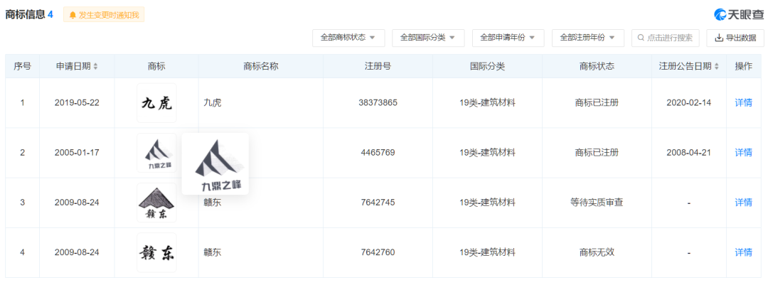 天眼查數(shù)據(jù)顯示,江西省九峰建材有限公司,成立于2003年12月19日,注冊(cè)資本為5000萬人民幣,法定代表人為吳旭江,經(jīng)營狀態(tài)為存續(xù),注冊(cè)地址為江西省上饒市玉山縣巖瑞鎮(zhèn)橫塘村,經(jīng)營范圍包括許可項(xiàng)目:水泥生產(chǎn)。 企業(yè)擁有九虎、九鼎之峰、贛東等注冊(cè)商標(biāo)。