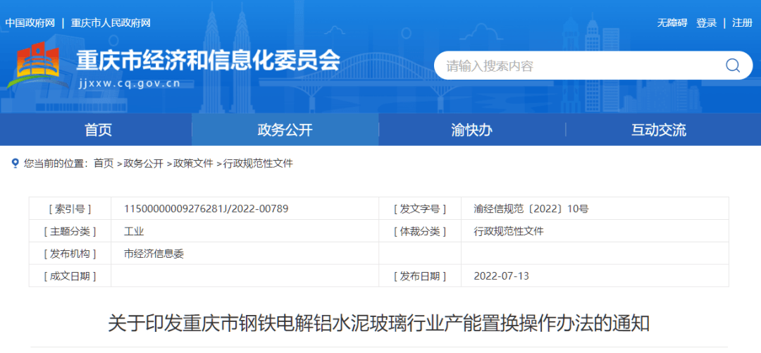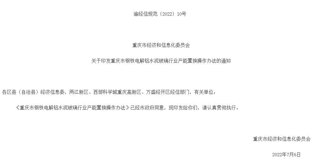 重慶市鋼鐵電解鋁水泥玻璃行業(yè)產(chǎn)能置換操作辦法