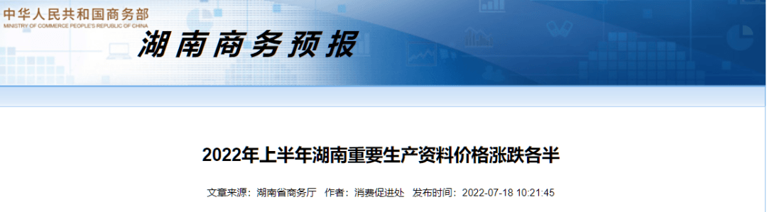 據(jù)湖南省商務(wù)廳重要生產(chǎn)資料市場(chǎng)監(jiān)測(cè)系統(tǒng)顯示,2022年上半年全省重要生產(chǎn)資料價(jià)格環(huán)比漲跌各半。六大類商品中煤炭、成品油、化肥市場(chǎng)價(jià)格上漲;鋼材、有色金屬、水泥市場(chǎng)價(jià)格下跌。具體監(jiān)測(cè)情況分析如下: