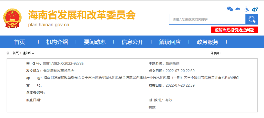 日前,海南省發(fā)改委發(fā)布《關(guān)于再次遴選華潤(rùn)水泥臨高金牌港綠色建材產(chǎn)業(yè)園水泥粉磨(一期)等三個(gè)項(xiàng)目節(jié)能報(bào)告評(píng)審機(jī)構(gòu)的通知》稱,根據(jù)《海南省固定資產(chǎn)投資項(xiàng)目節(jié)能審查實(shí)施辦法》(瓊府〔2017〕47號(hào))等有關(guān)規(guī)定,我委擬公開遴選1家評(píng)審機(jī)構(gòu)承擔(dān)華潤(rùn)水泥臨高金牌港綠色建材產(chǎn)業(yè)園水泥粉磨(一期)等三個(gè)項(xiàng)目節(jié)能報(bào)告評(píng)審工作。