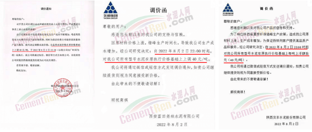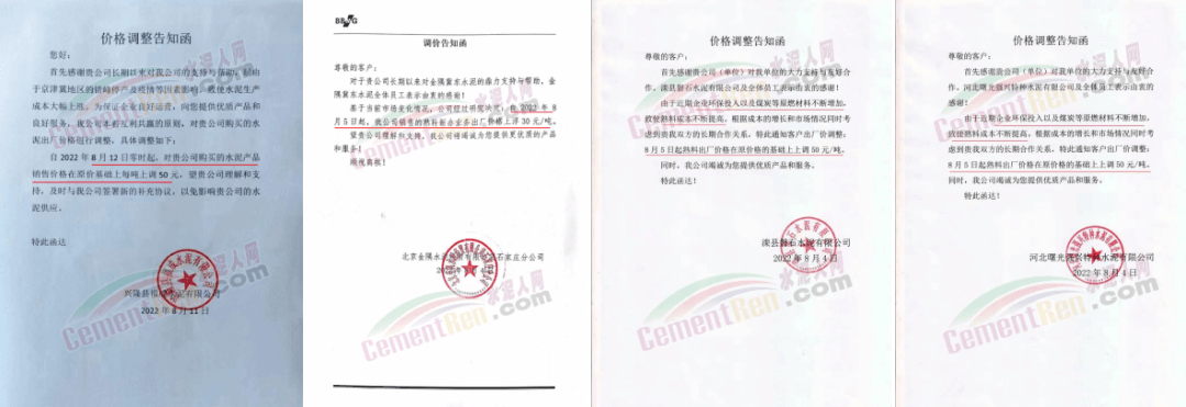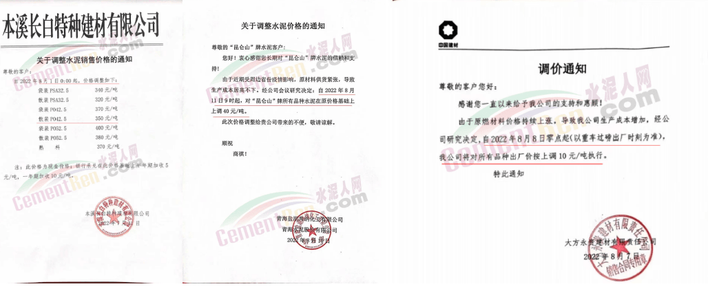 中材湘潭水泥有限責任公司通知,根據(jù)當前市場行情,經(jīng)公司研究決定自2022年8月12日上午8時起,對各區(qū)域所有水泥品種的包裝和散裝在原價格基礎上上調(diào)20元/噸。價格調(diào)整后,如繼續(xù)安排車輛到公司提貨,則視為確認本次調(diào)整。