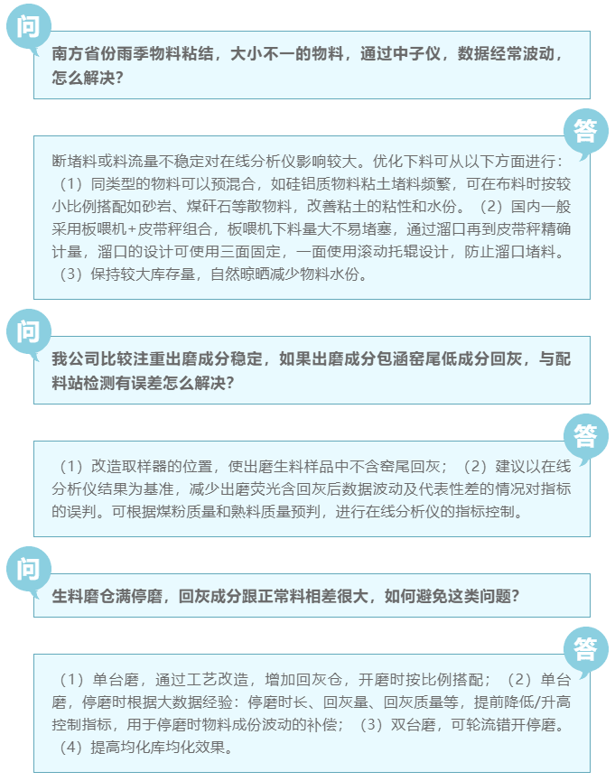 直播中用戶對(duì)技術(shù)的咨詢提問(wèn)等互動(dòng)頻繁,以下集中整理了本次直播中大家在水泥生料生產(chǎn)控制儀器中的所面臨的各類問(wèn)題,由直播嘉賓蔣山為大家進(jìn)行疑難解答。