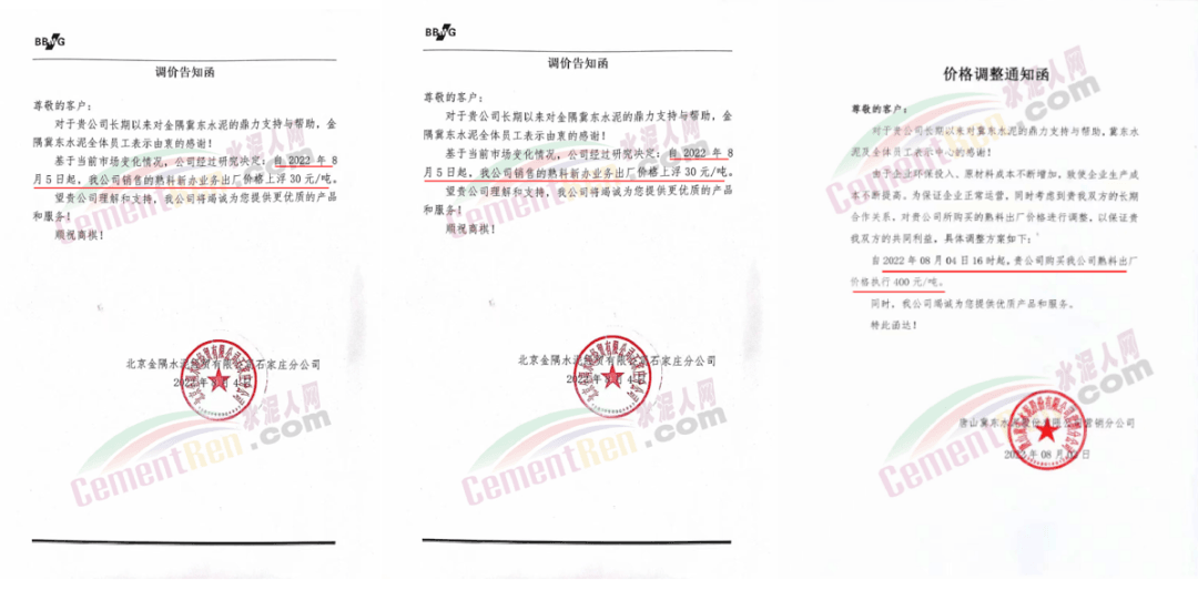 陜西金隅冀東水泥價(jià)格上調(diào)40元/噸;重慶金隅冀東銷往主城區(qū)的所有水泥價(jià)格上調(diào)30元/噸。