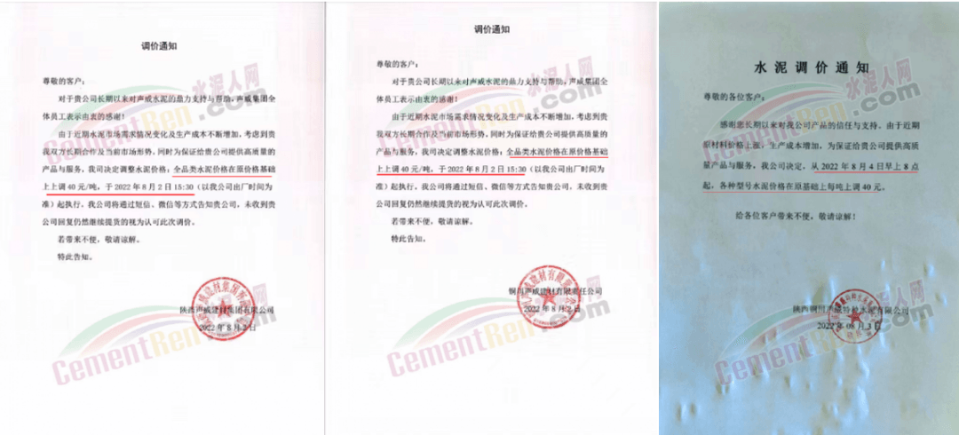 包括聲威特水在內(nèi)的三家堯柏水泥上調(diào)水泥價(jià)格40元/噸。